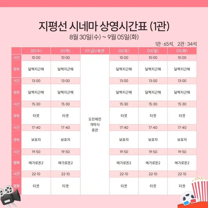 지평선 시네마 상영시간표 안내(8월 30일 ~ 9월 05일)