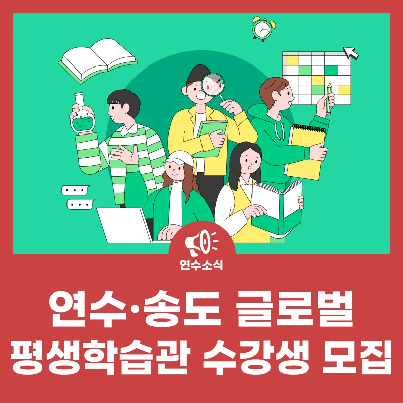 팝업존 팝업존 이전 팝업존 다음 공지사항 더보기 공지 2026년 상반기 연수·송도 글로벌 평생학습관 프로그램 수강생 모집 2026-01-27 공지 2026년 상반기 인생이모작지원센터 프로그램 수강생 모집 2026-01-27 공지 2026년 연수 여성대학 제4기 교육생 모집 2026-01-22 공지 2026. 느린학습자부모교육 '미취학 자녀를 위한 긍정적 행동지원(PBS) 솔루션' 학습자 모집안내 2026-01-15 타기관 2026년 연수구노인복지관 경로당여가문화보급사업 유급강사 모집 2026-01-14 공지 2026. 연수·송도 글...