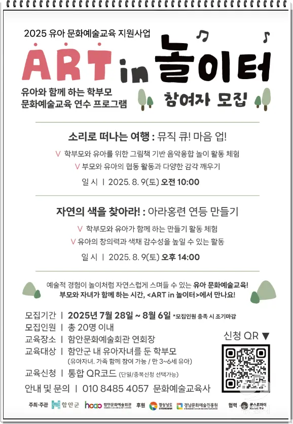 유아 문화 예술교육 연수 <Art in 놀이터>: 학부모와 유아가 함께 예술을 경험하는 교육 프로그램이에요. 놀이와 창작을 결합해 아이들의 창의성을 키우고, 부모와의 유대감을 높이는 시간이 될 거예요.