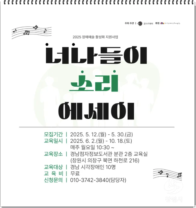 장애예술 활성화 지원 사업 <너나들이 소리 에세이>: 장애 예술인들의 창작 활동을 지원하고, 그들의 이야기를 음악과 글로 풀어내는 프로젝트예요.