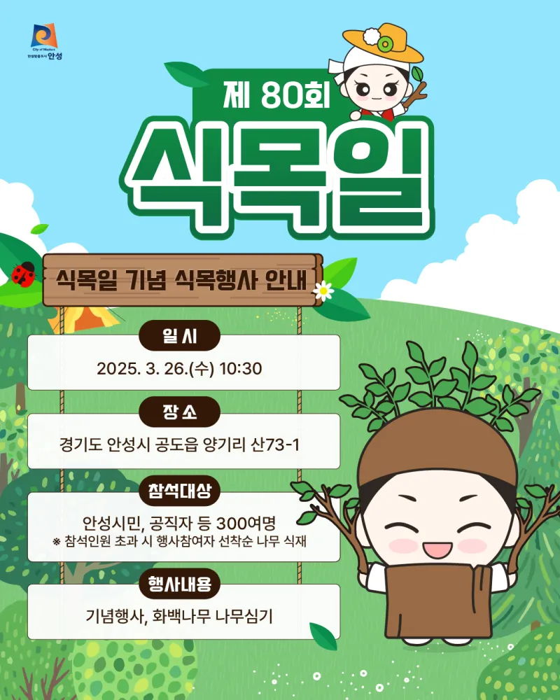 안성시민, 공직자 등 300여명 ※ 참석인원 초과시 행사참여자 선착순 나무식재 |