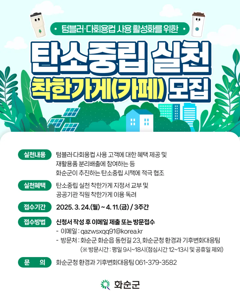텀블러·다회용컵 사용 활성화를 위한 탄소중립 실천 착한가게(카페) 모집