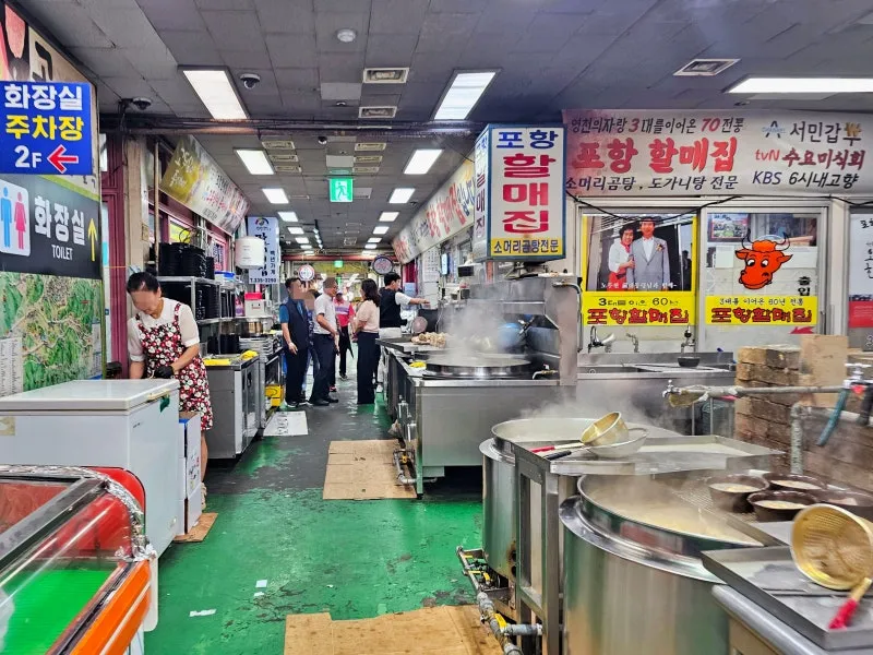 영천공설시장의 가장 유명한 골목은 곰탕 골목입니다.