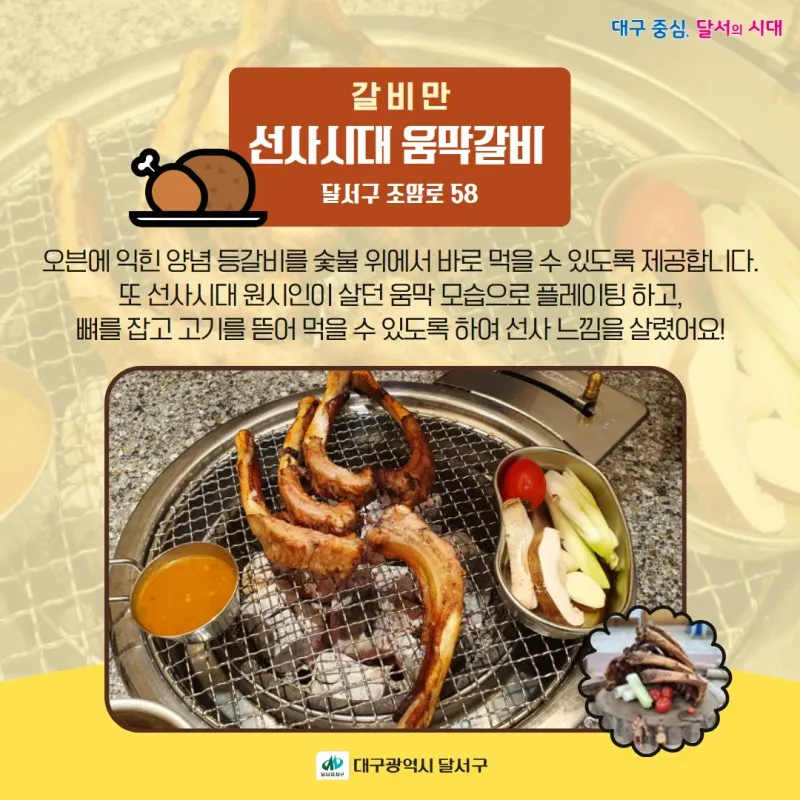 달서구 '선사시대로 맛나 음식점' 5곳과
