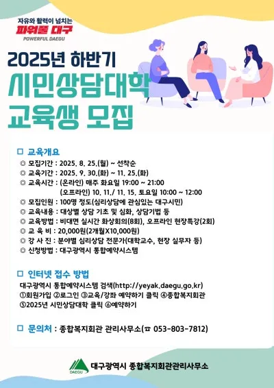 2025 하반기 대구시 종합복지회관 시민상담대학 :: 선착순 모집
