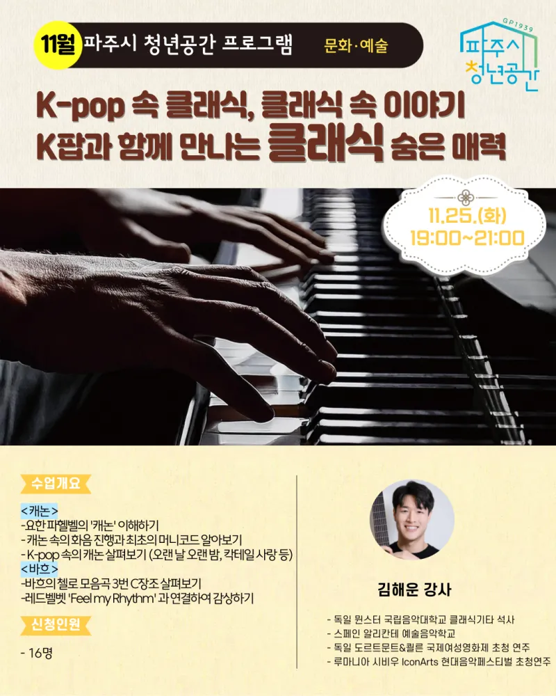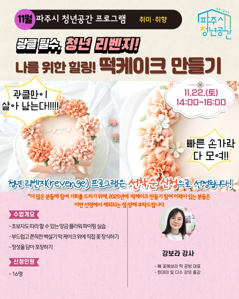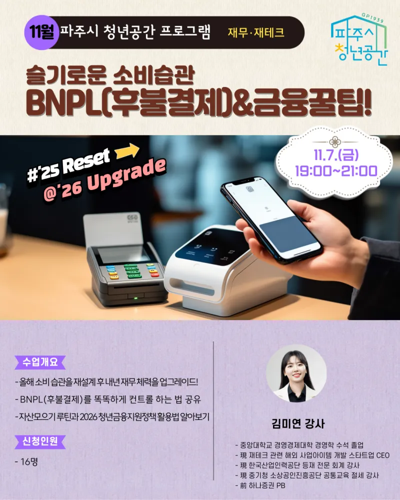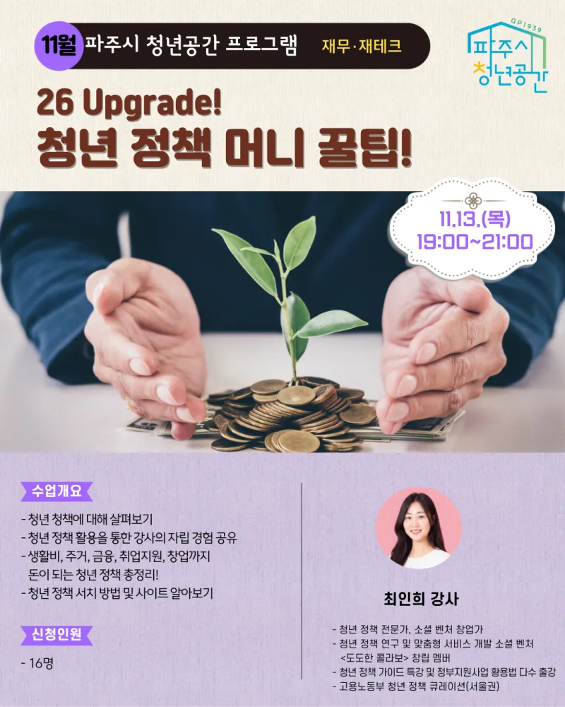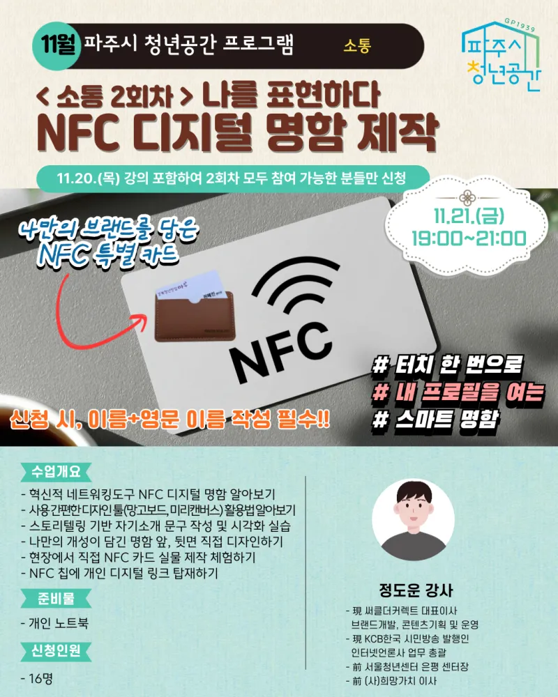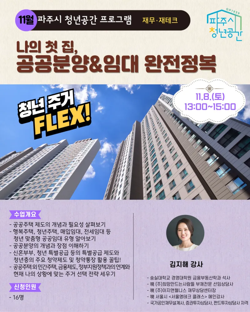 ✅ 신청대상 : 파주시 생활권인 만 19~39세 청년(고3 가능) / 16명