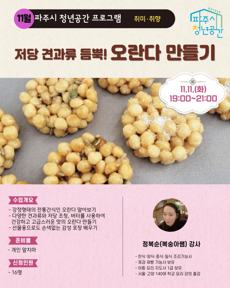 파주시 청년공간 GP1939 11월 프로그램 소개 및 신청