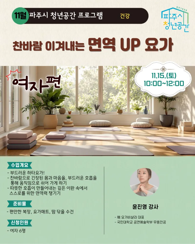 ✅ 신청대상 : 파주시 생활권인 만 19~39세 청년(고3 가능) / 여자 6명
