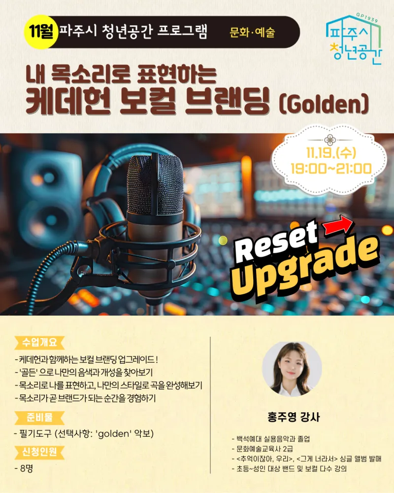 ✅ 신청대상 : 파주시 생활권인 만 19~39세 청년(고3 가능) / 8명