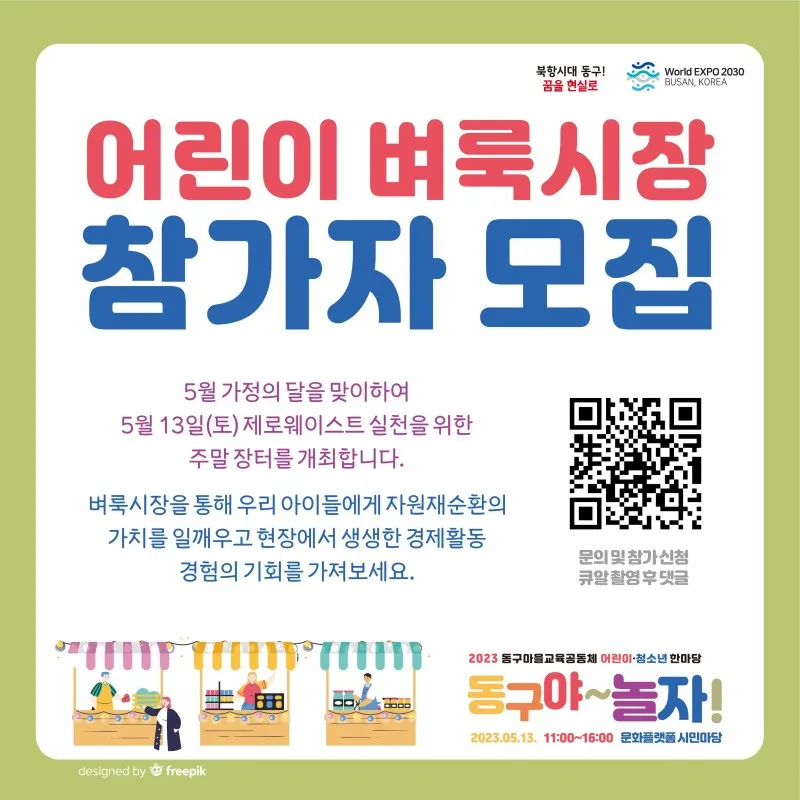 🔸 내용: 어린이 벼룩시장, 체험부스와 놀이 한마당 운영