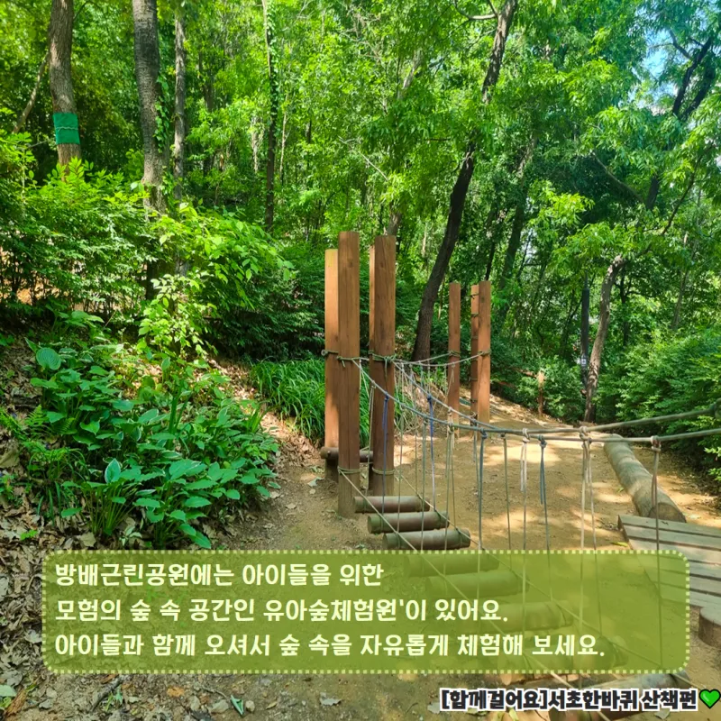 방배근린공원에는 모험의 숲 속 공간인 '유아숲체험원'이 있어요.