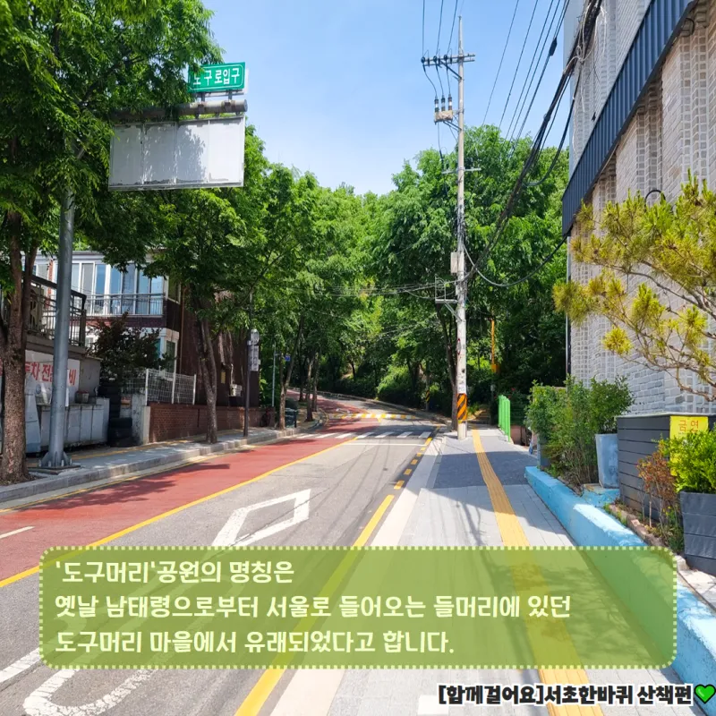 '도구머리' 공원의 명칭은 옛날 남태령으로부터 서울로 들어오는 들머리에 있던 도구머리 마을에서 유래되었다고 합니다.