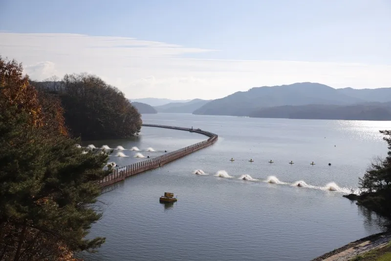 잔잔하게 흐르는 안동호 위를 거닐면서