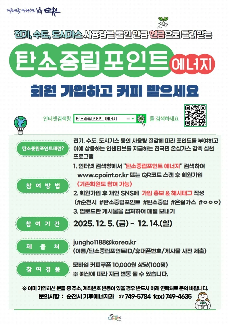 순천시민 탄소중립포인트 가입하면 커피가 딱! ☕