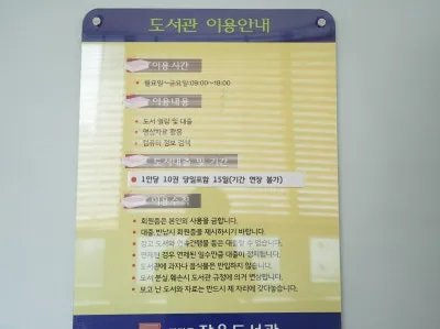 입구 안쪽으로 들어오시면 도서관 이용 방법과 현재