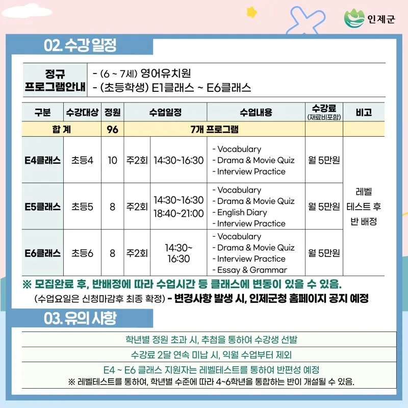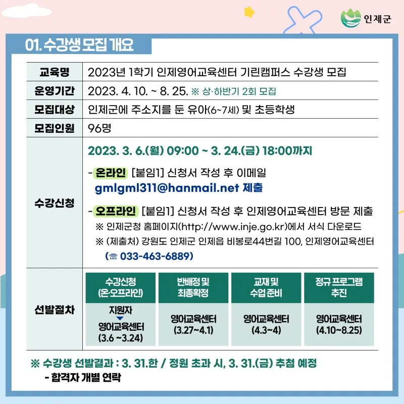 2023년 1학기 인제영어교육센터 기린캠퍼스 수강생 모집공고