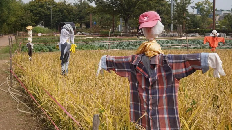 벼를 지켜준 허수아비들 덕분에