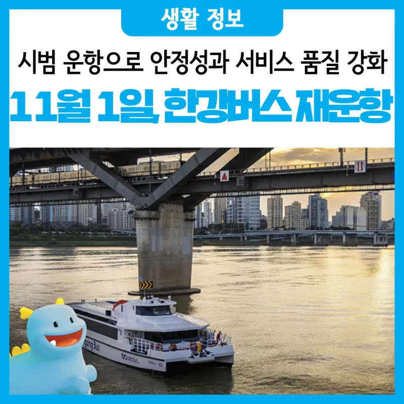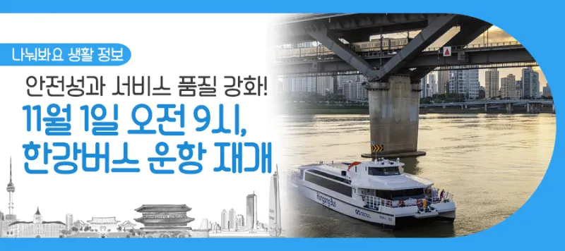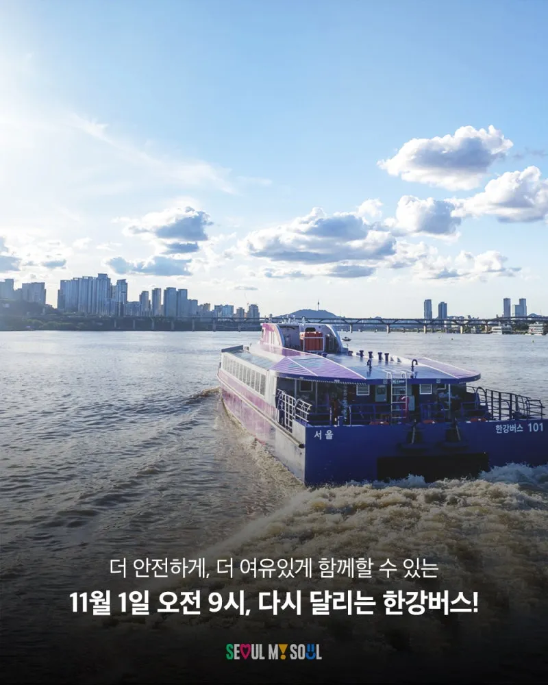 11월 1일 토요일 오전 9시부터 한강버스 운항 재개! |