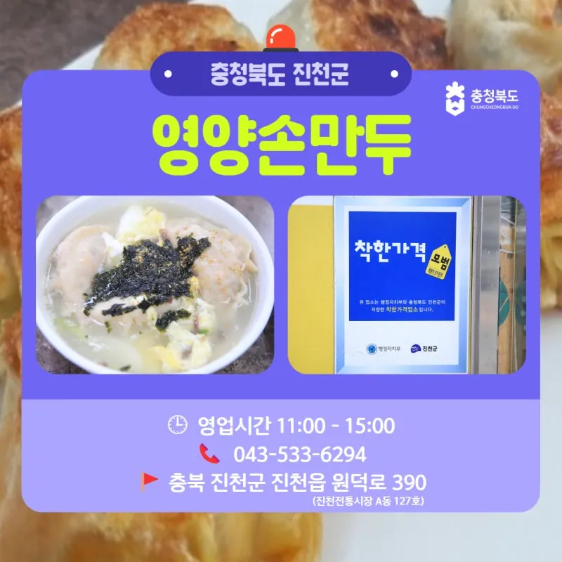 충북 만두 맛집 추천 착한가격업소 청주 옥천 영동 진천 음성