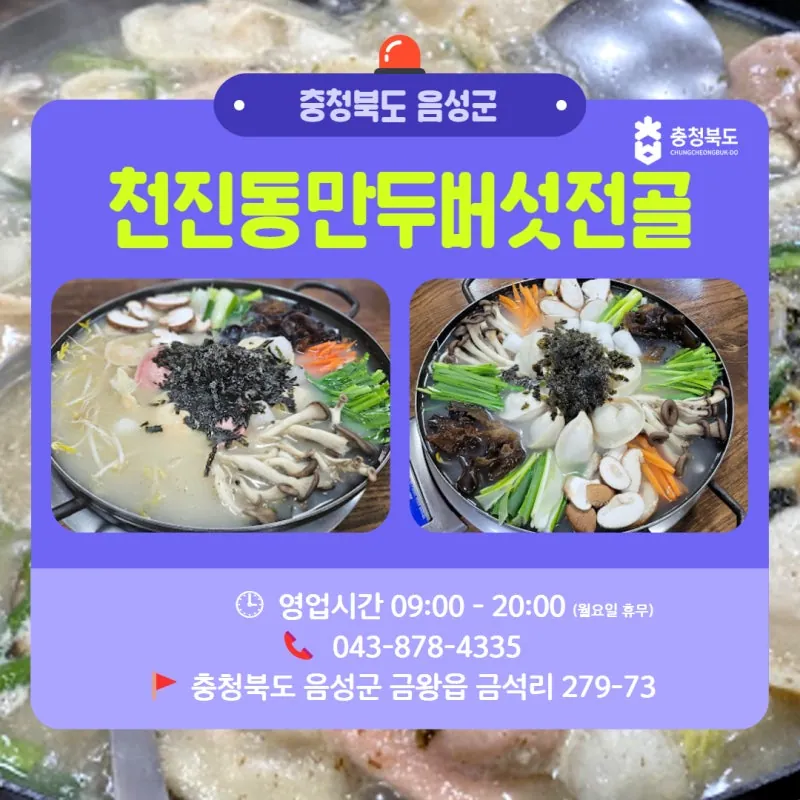 천진동만두버섯전골은 그 이름에서 알 수 있듯이,