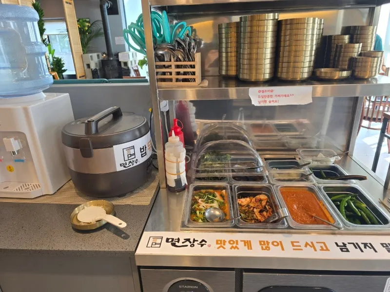 이곳은 셀프바로 반찬부터 큰 밥통은 밥이 무한 셀크리필이라 푸짐하게 퍼주는 음식점입니다.