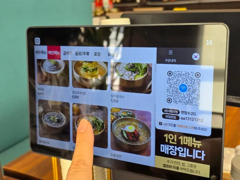 배가 고파서 일단 편리한 테이블 오더로 들깨칼국수와