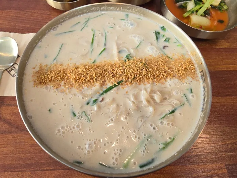 깨가 한줄로 듬뿍 뿌려진 이 것이 들깨칼국수이고