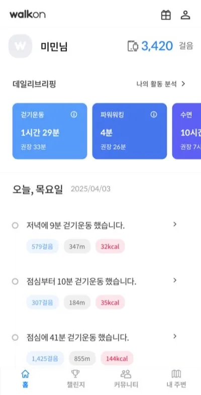 그렇게 챌린지에 참여해서 밤낮없이 걷고 또 걷고..