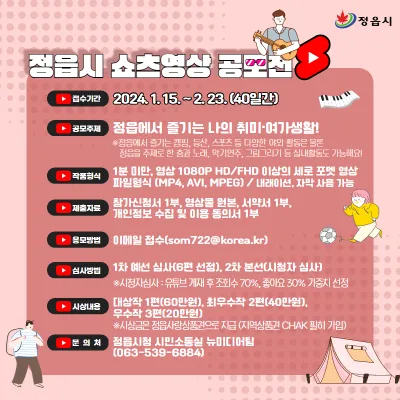 정읍시 쇼츠 영상 공모전 :: 정읍에서 즐기는 나의 취미·여가생활!(1.15.~2.23.)