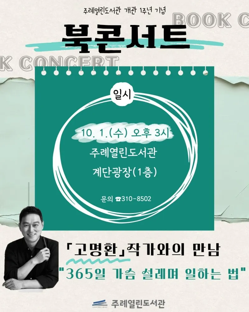 주례열린도서관 개관 1주년 기념 북콘서트 '고명환 작가와의 만남' 개최