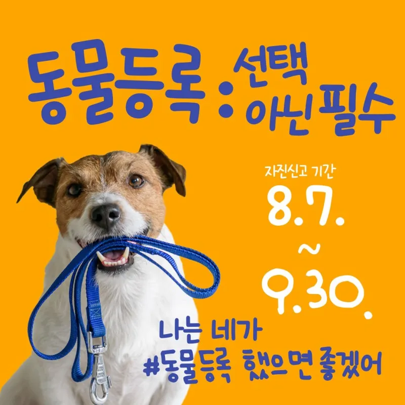 ‘2023년 동물등록 자진신고기간’을 오는 8월 7일부터 9월 30일까지 운영합니다.
