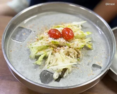 걸쭉하고 고소한 콩국물이 시원하고 맛있어요❄️