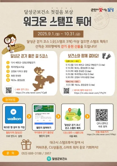 📍 달성군보건소 첫걸음 보상 워크온 스탬프 투어