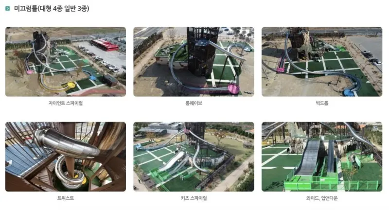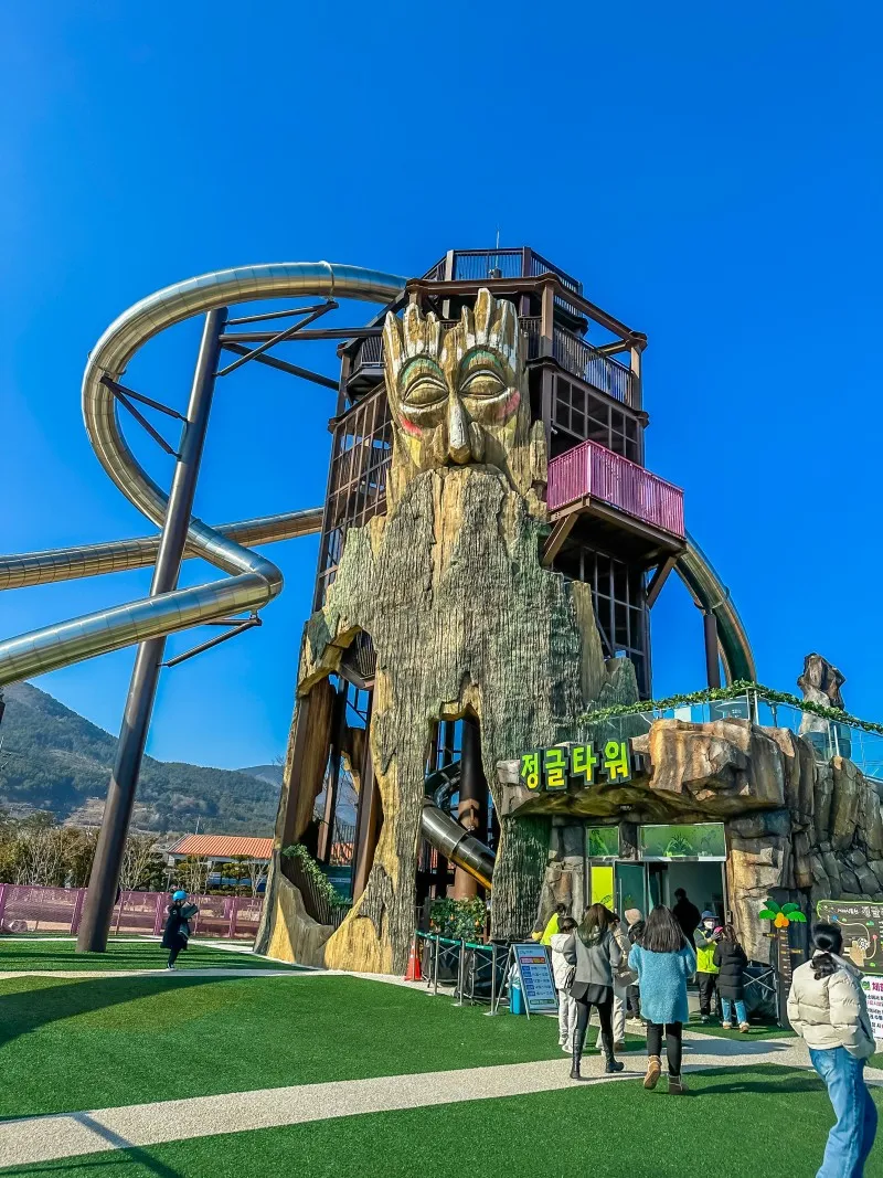 자이언트 트리의 오른팔을 형상화한 빅드롭 슬라이드는 13.6m 높이에서 50m 길이를 활강하며, 왼팔을 의미하는 롱웨이브 슬라이드는 10.6m 높이에서 40m 길이를 활강해요. 자이언트 트리 중심의 트위스트 슬라이드는 9.1m 높이에서 23m 길이를 회전 활강하는데 개인적으로 회전활강이 재밌었던 것 같아요. 빙글빙글 돌아가는 묘미가 있더라구요.