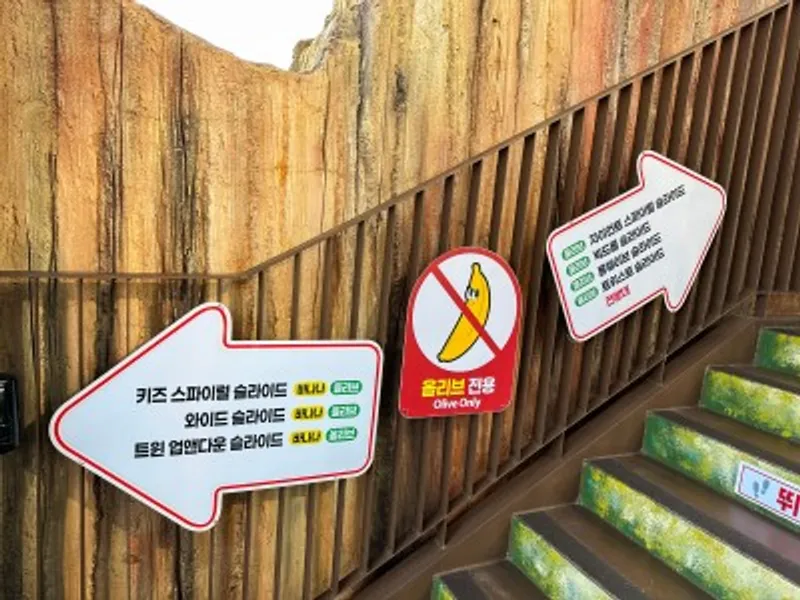 키즈 스파이럴 슬라이드와 와이드 슬라이드, 트윈 업앤다운 슬라이드가 있는데 아이는 롱 웨이브나 자이언트 스파이럴을 좋아할 줄 알았지만 업앤다운이 훨씬 재밌었다고 하더라구요.