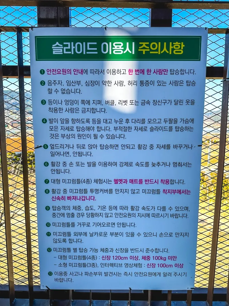 슬라이드 이용시 주의 사항 꼭 읽어보시고, 안전요원의 안내를 꼭 따라주세요.