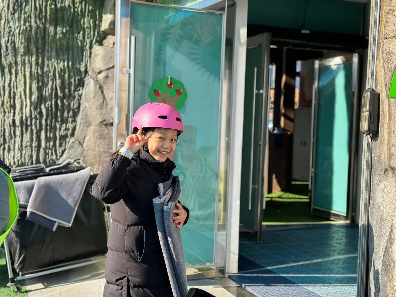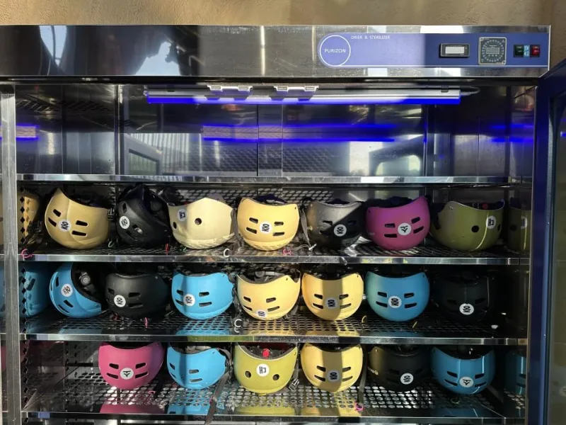 입구에 들어가서 손목밴드를 보여주면 헬멧을 나눠주시는데요. 엄청 깨끗하게 관리를 하고 있었어요.