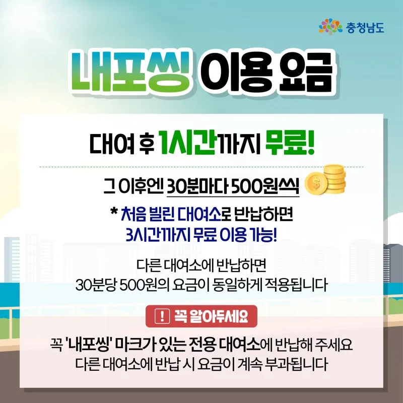 꼭 '내포씽'마크가 있는 전용 대여소에