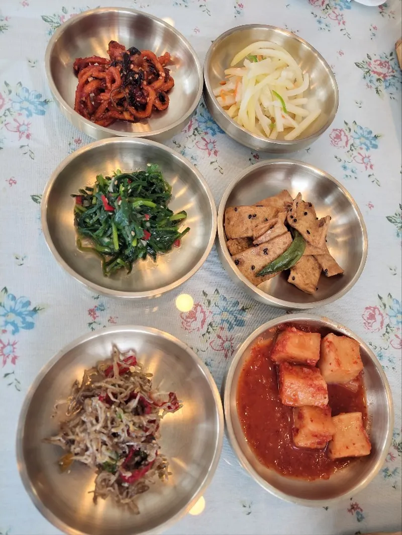 특이하게 전부 놋쇠 그릇에 담겨 나와