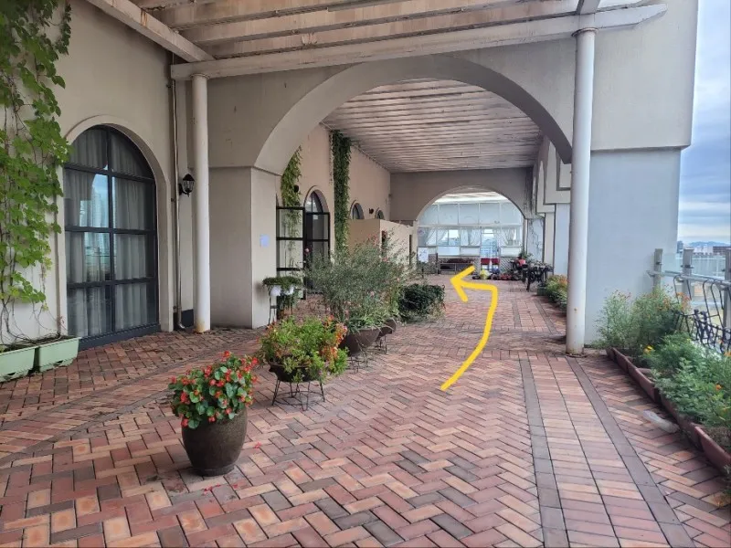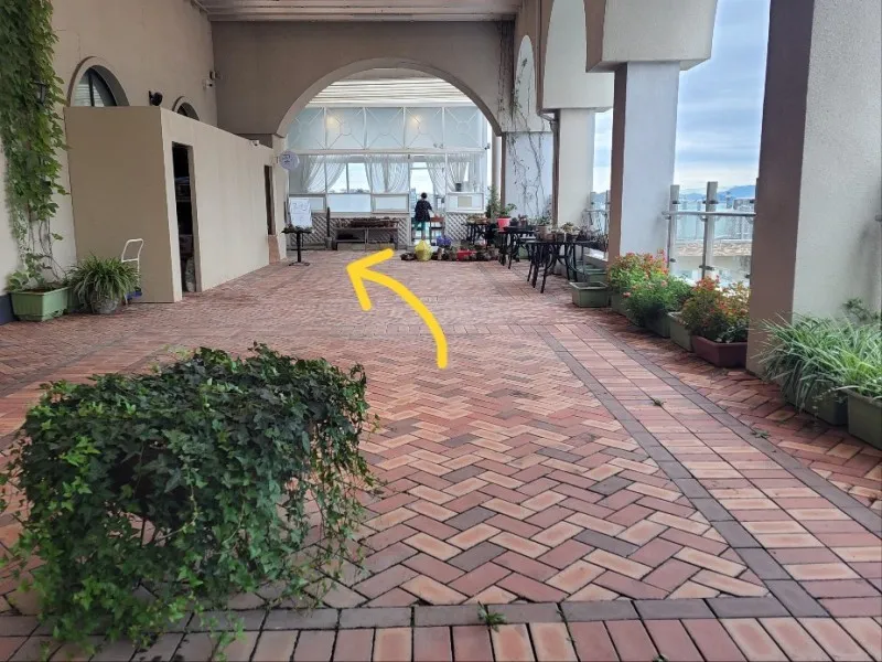 작은 화분들로 정성껏 꾸며 놓은 길을