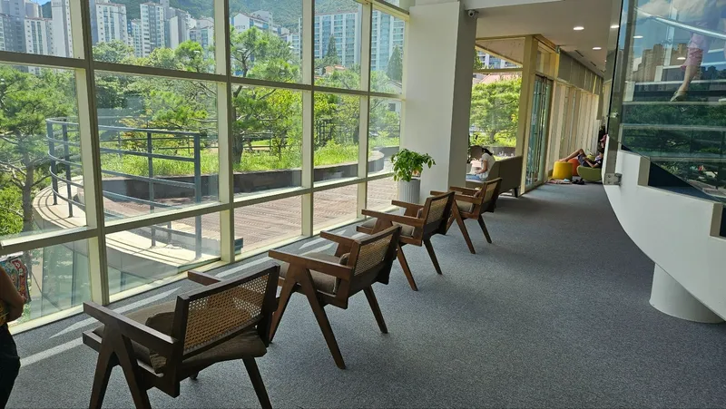 다양한 좌석이 창밖 배경을 마주 보고 있어 독서하기 참 좋은 공간들이 많았습니다.