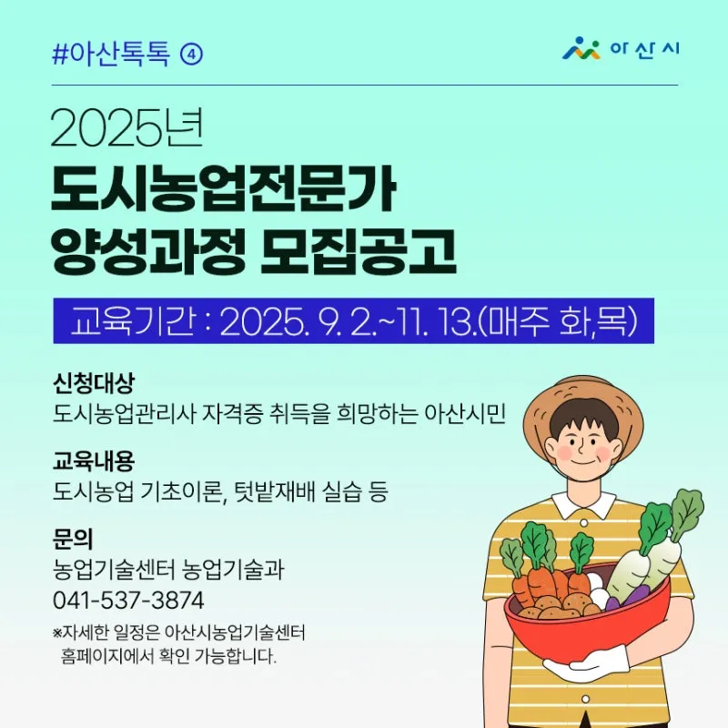 자세한 일정은 아산시농업기술센터 홈페이지에서 확인 가능합니다.