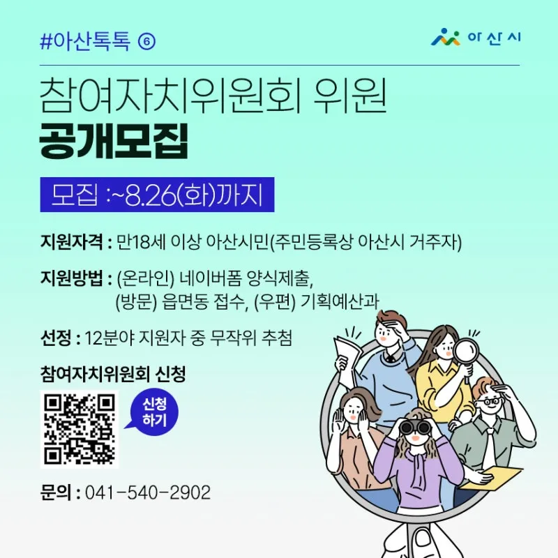 지원자격: 만18세 이상 아산시민(주민등록상 아산시 거주자)