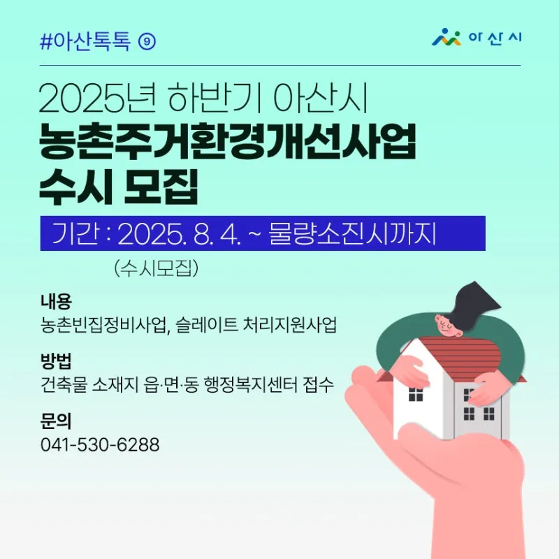 2025년 하반기 아산시 농촌주거환경개선사업 수시 모집