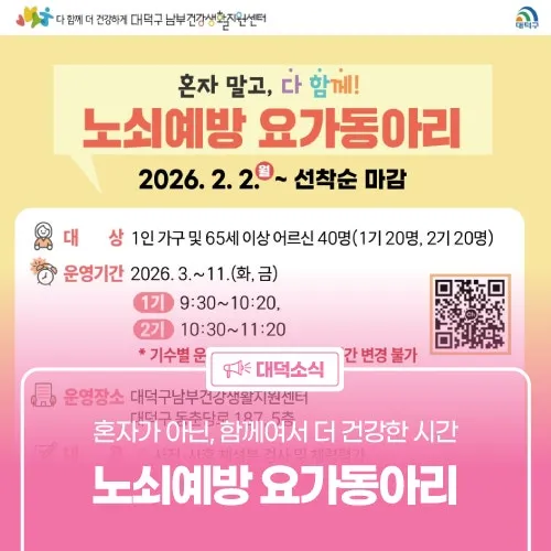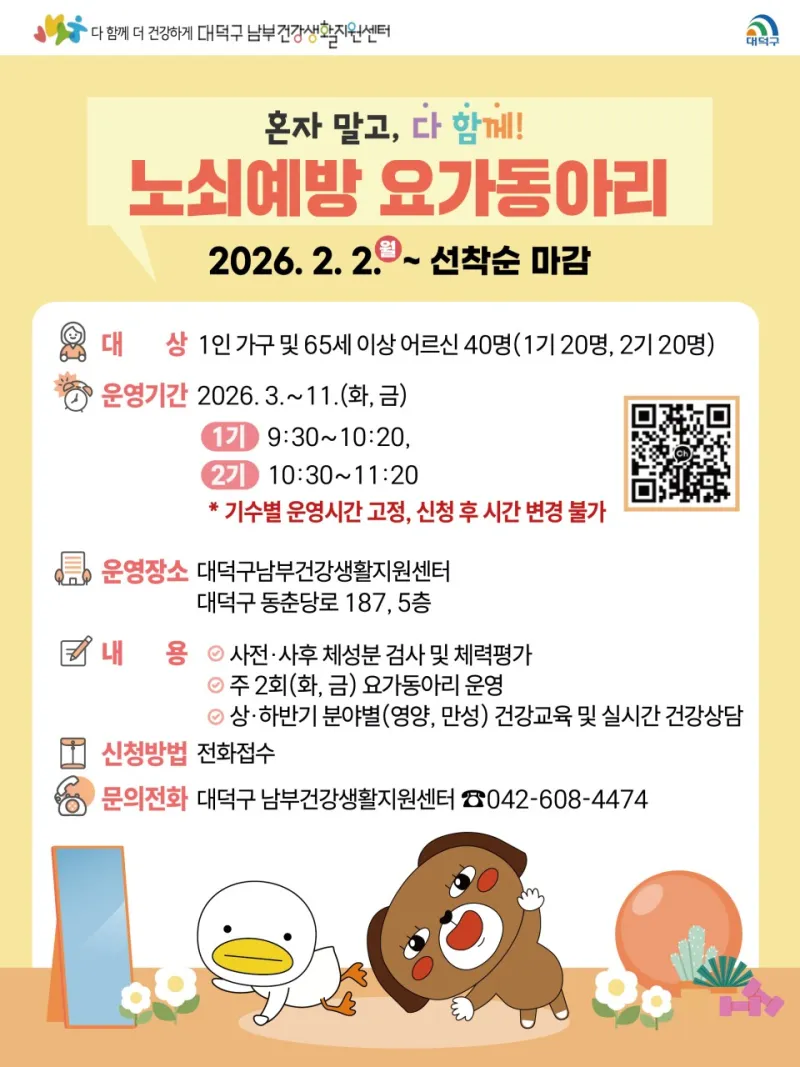 🧠 혼자가 아닌, 함께여서 더 건강한 시간2026년 노쇠예방 요가동아리 참여자 모집!