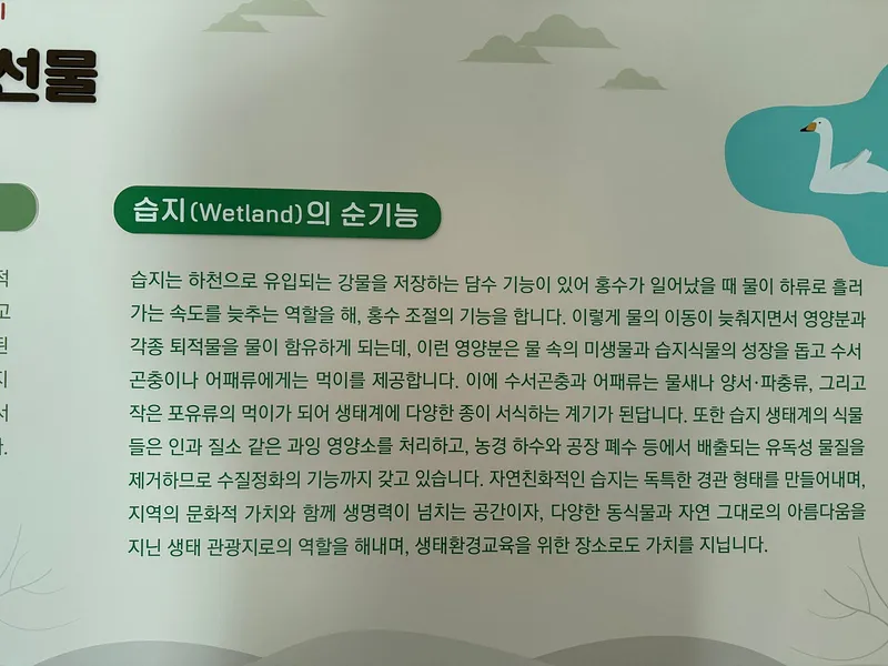 * 생태적 기능 : 생물 다양성 유지, 철새 도래지, 생태계 균형 유지