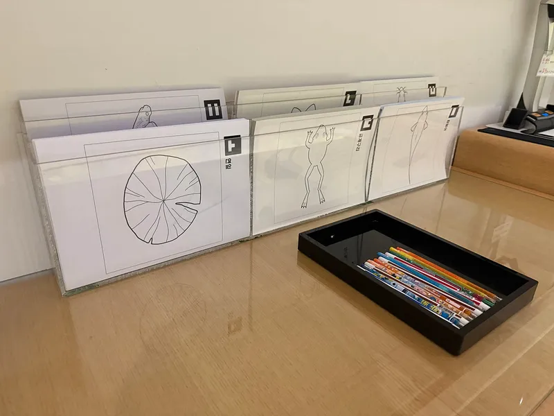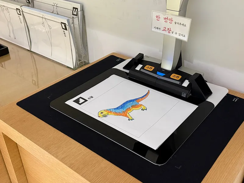직접 그림을 채색해서 스캔하면 자기가 그린 동물이 벽면에 등장하게 되는데요. 자신의 이름을 동물에 새기거나 다양한 색연필을 활용해 나만의 동물을 표현해 볼 수 있도록 하였습니다.