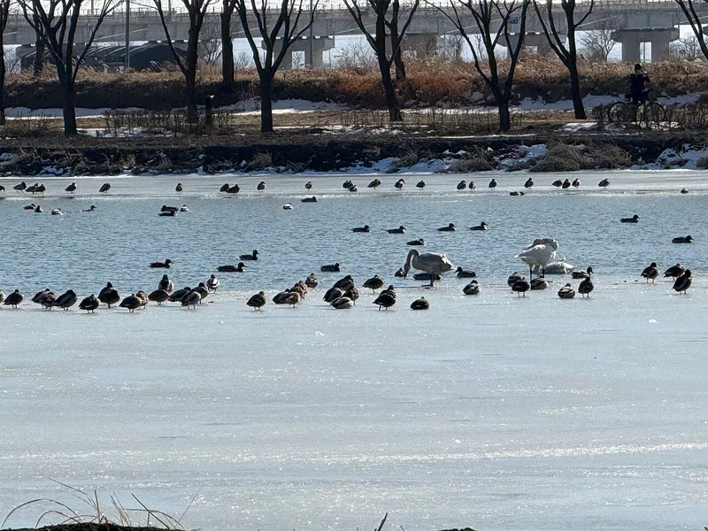 습지의 기능에서 보았듯이 철새 도래지로의 역할을 톡톡히 하고 있는 합덕제의 모습인데요. 정말 많은 겨울 철새들이 쉬어가고 있네요.