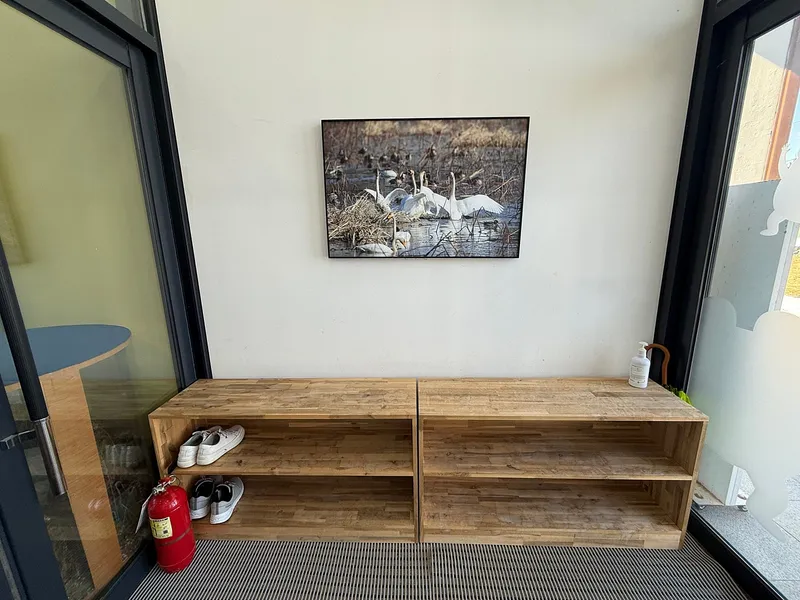 신발장 바로 위로 합덕제의 상징과도 같은 고니 사진이 놓여있네요.
