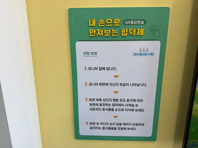 체험센터는 생태체험 AR, 합덕제 그래픽월, 실감영상체험, 달려라 합덕제로 구성이 되어있는데요. 구석구석 자세히 살펴보도록 할까요?